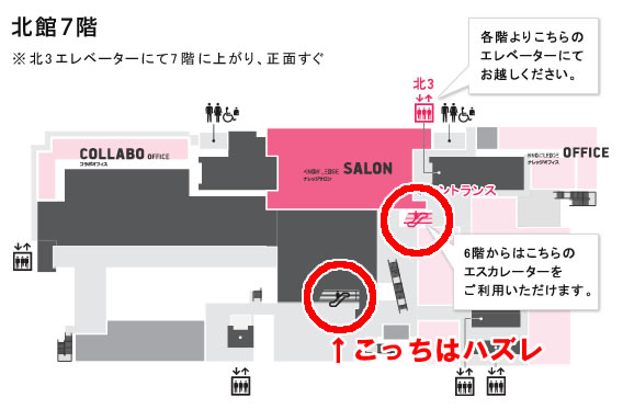 上がってきたエスカレーターは、サロンフロアに繋がっていなかった。