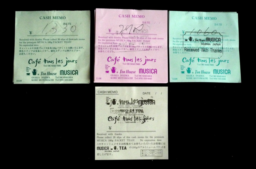 20枚集めると1000円分のムジカ紅茶100gパケットがもらえるんです。
