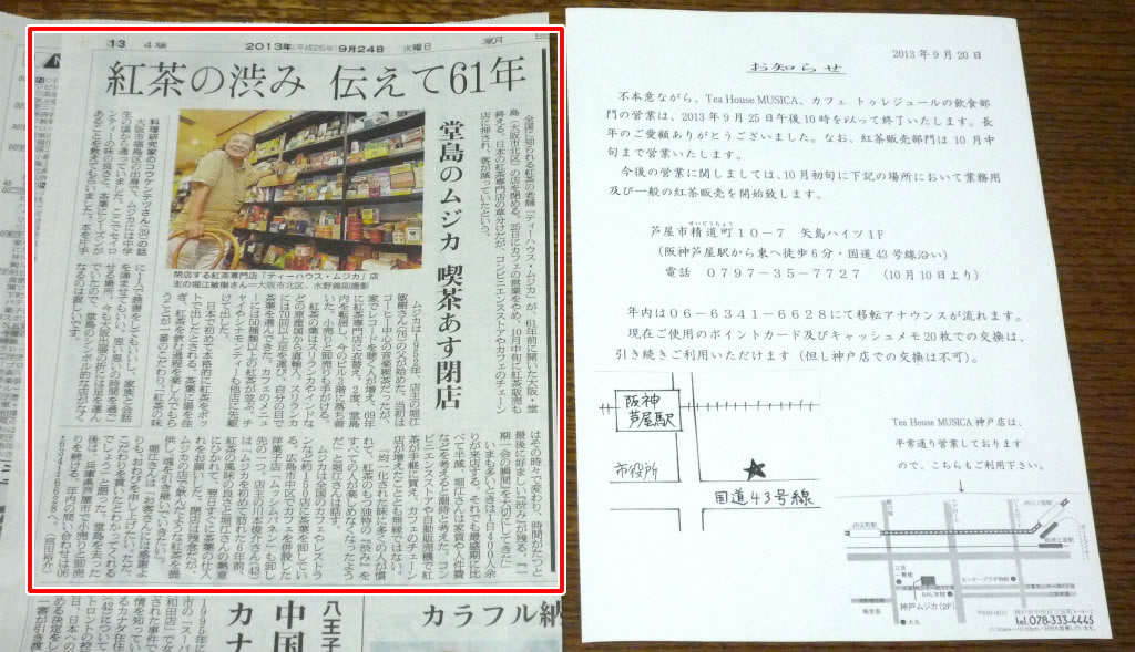 長年のご愛顧ありがとうございました。なお、紅茶販売部門は10月中旬まで営業いたします。