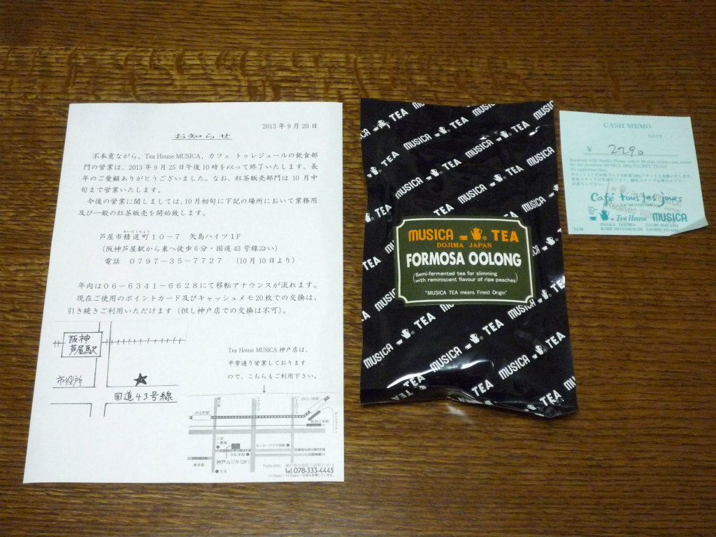 不本意ながら、TeaHouseMUSICA、カフェトゥレジュールの飲食部門の営業は、2013年9月25日午後10時を以て終了いたします。