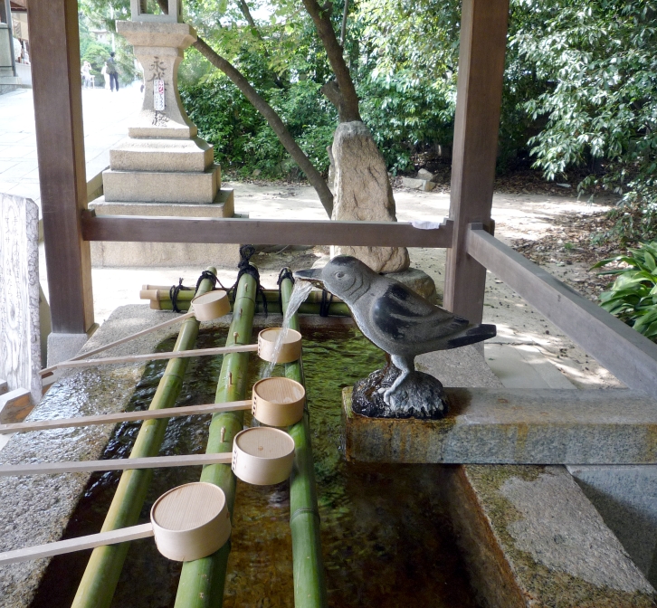 手水舎にいるのもカラス。