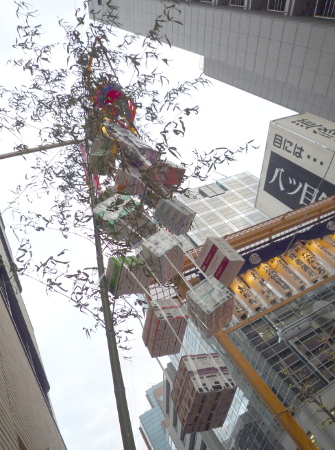 授与されている笹はちゃんとした笹で、七夕のせいで笹の旬は夏のイメージなのですが、笹って一年中緑なんかな。