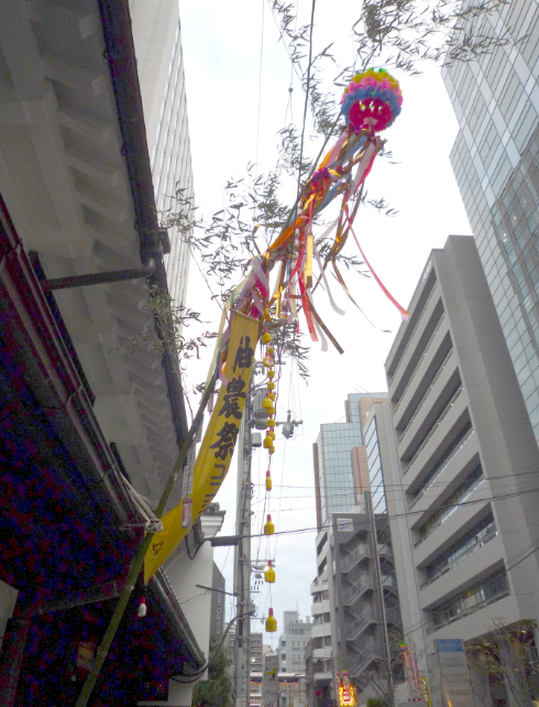 見えるかな、笹飾りにボンドが下がっています。かわいい。