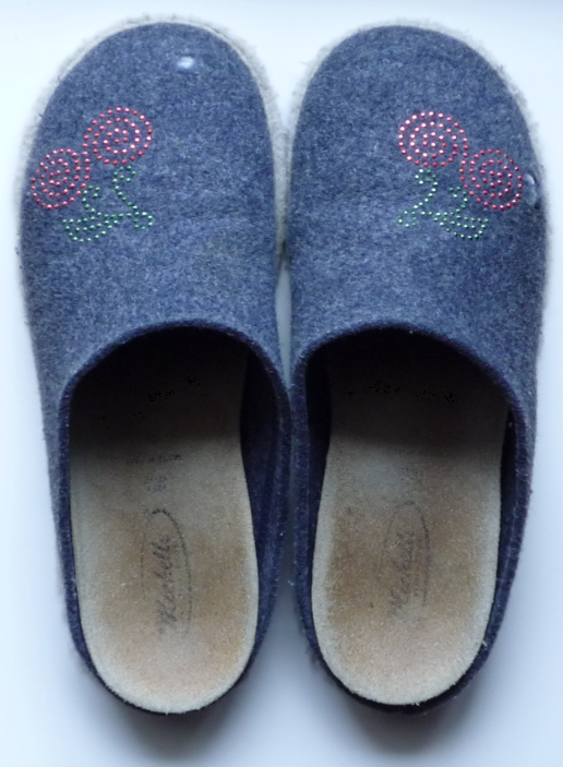 このスリッパはいっちょ前にあしうらサポートする中敷きが入っていたのですが、取っ替えることができないまま履き倒してご臨終。よく保った方です、ありがとう。