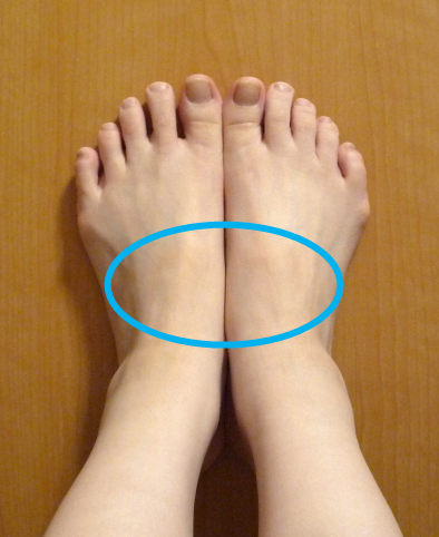 二の甲(ウエストガース)から三の甲(インステップガース)にかけての部分。