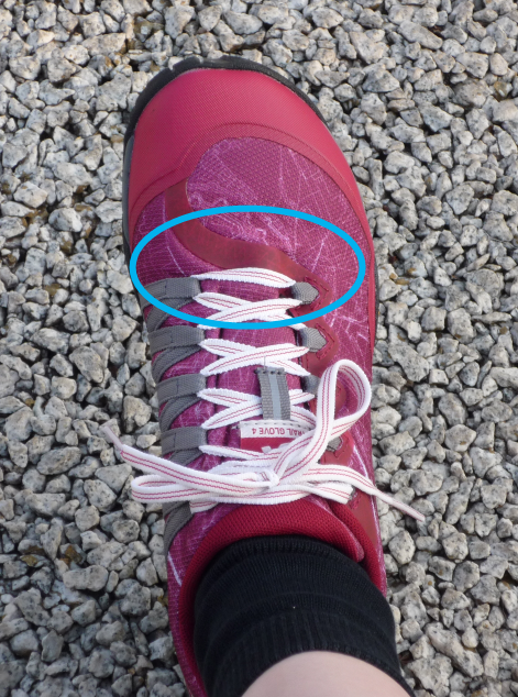 同じくトレランシューズだけれどソールの厚みが違い、ヒールロックの穴がある。