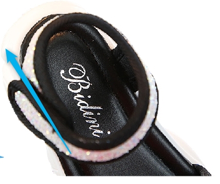 トントンしてサンダルのかかとと足のかかとがくっついたら、足首の面ファスナーをぎゅっとして、べたー!