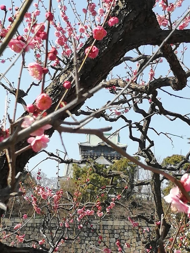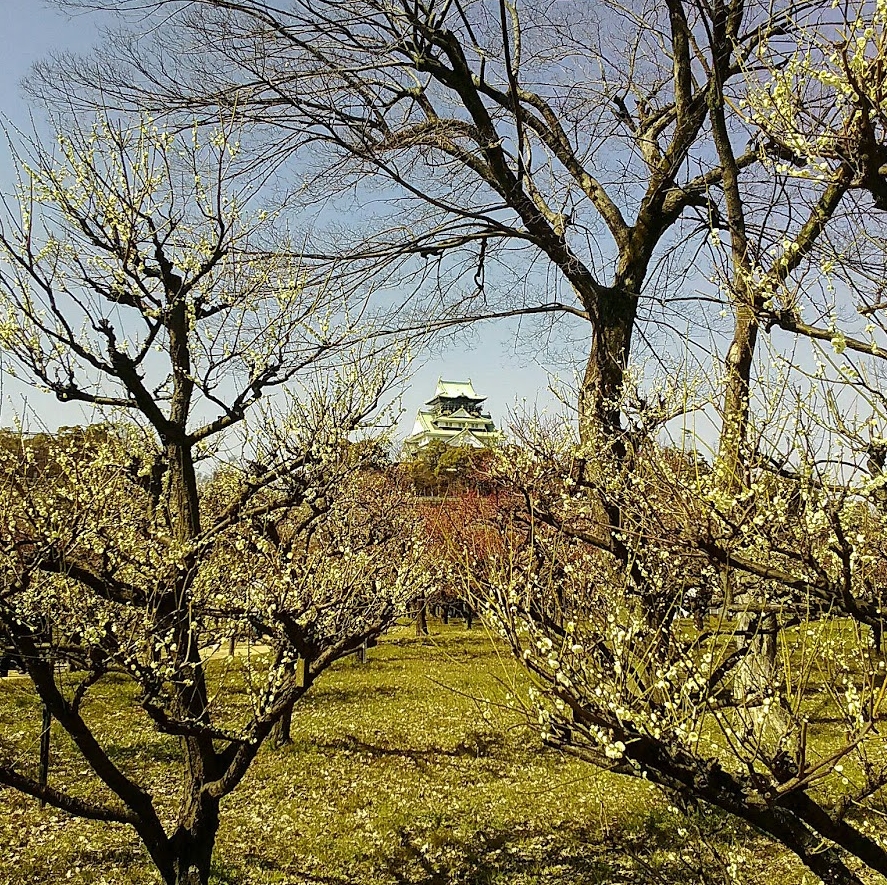大阪城公園全体的に犬の散歩が多く、梅林までふつうにやって来るので苦手な方は万博公園へ。