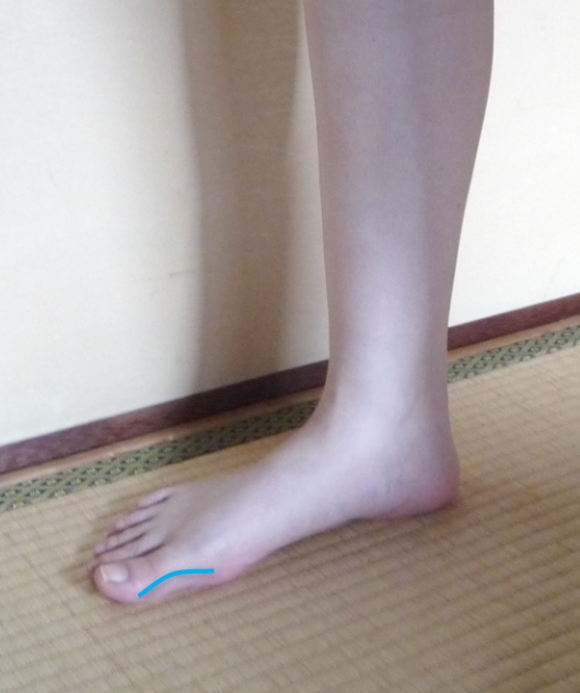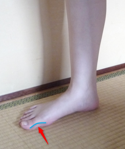 「歩くとき、右足の親指付け根から接地していて、すごく痛い。